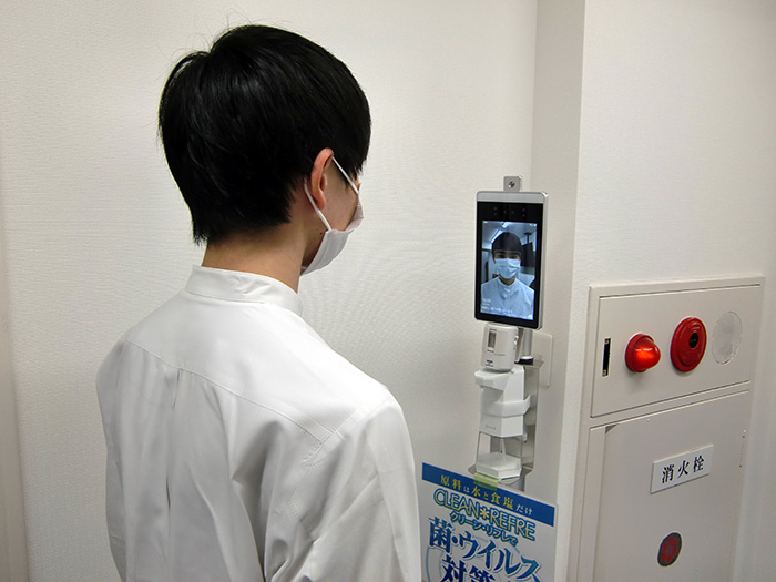 入口にサーモグラフィーを設置し、検温を実施しております。